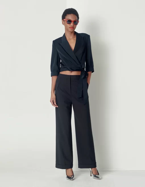 MARYLING PEAK-LAPEL WRAP TOP BLUE | Womens JACKET & COAT