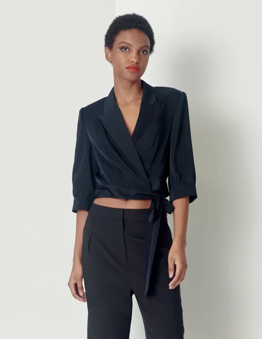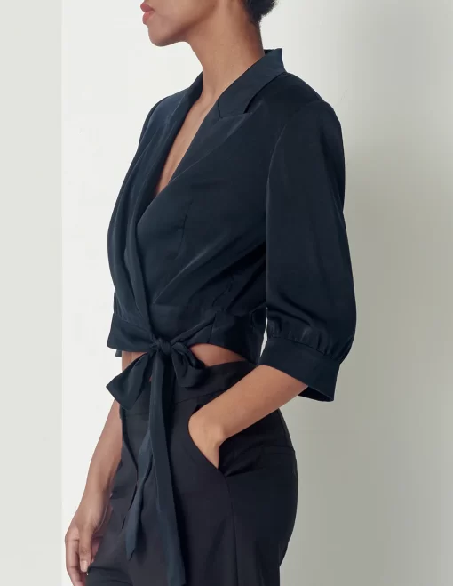 Be the first to review “MARYLING PEAK-LAPEL WRAP TOP BLUE | Womens JACKET & COAT” Cancel reply
