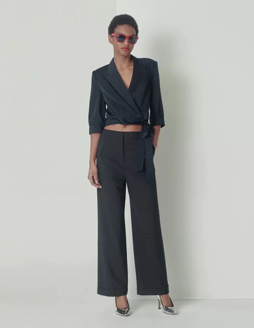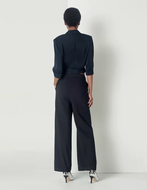 MARYLING Black Double-Sided Woolen Eight-Quarter Wide-Leg Pants BLACK | Womens Pants & Shorts