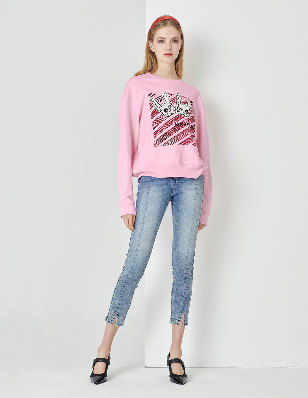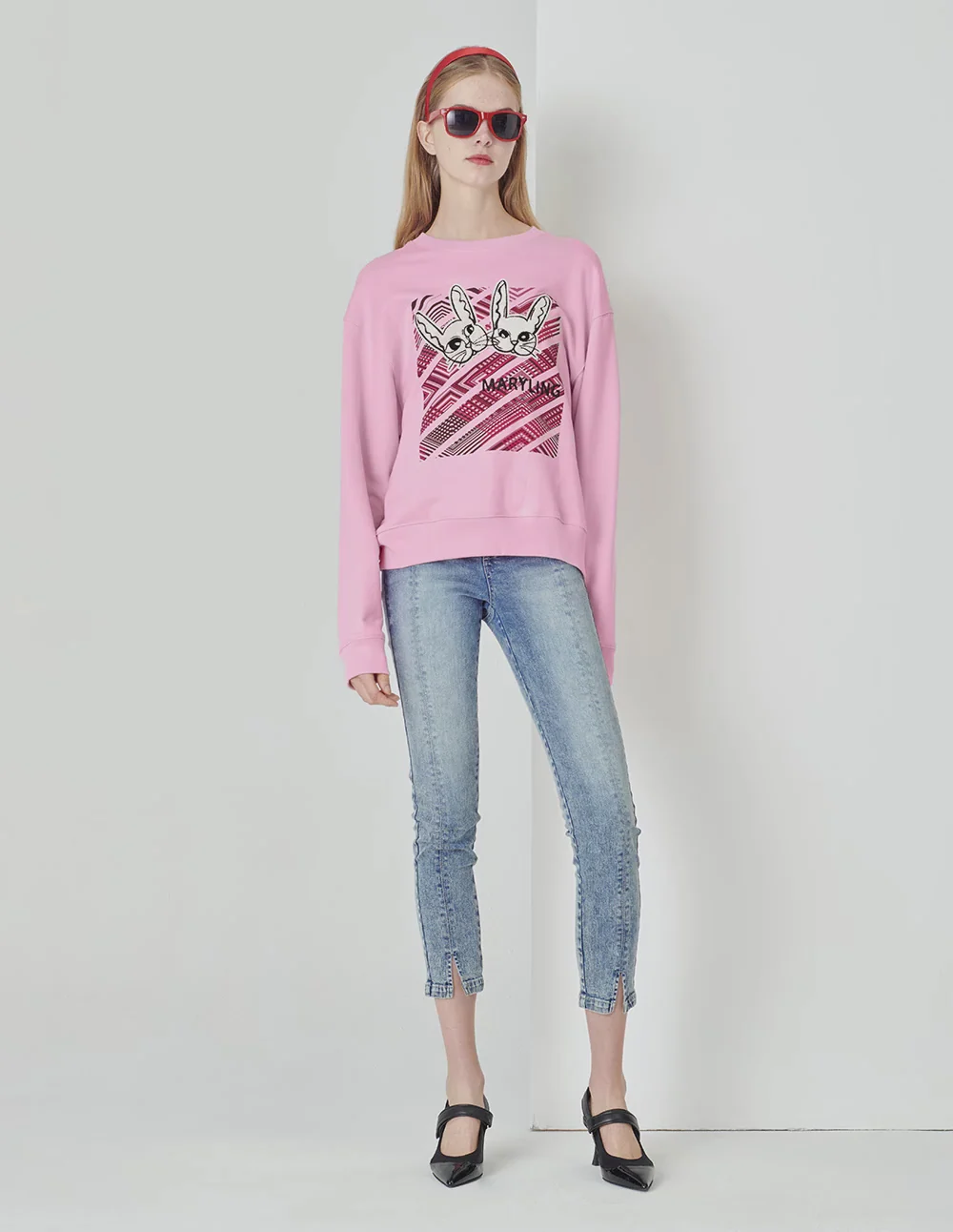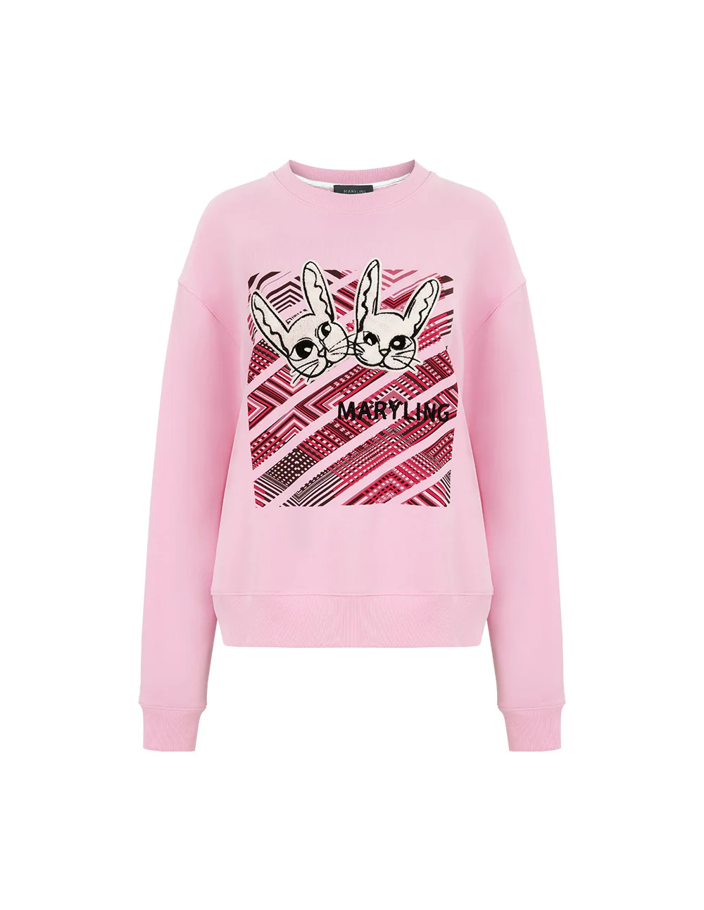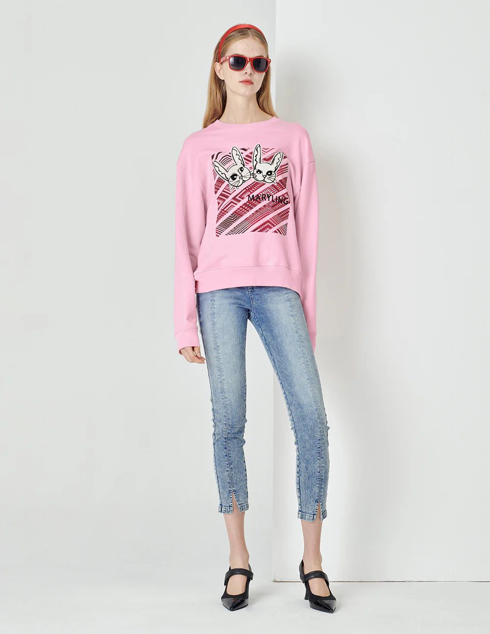 MARYLING Pink Strawberry Bunny Round Neck Ladies Hoodie PINK | NEW IN