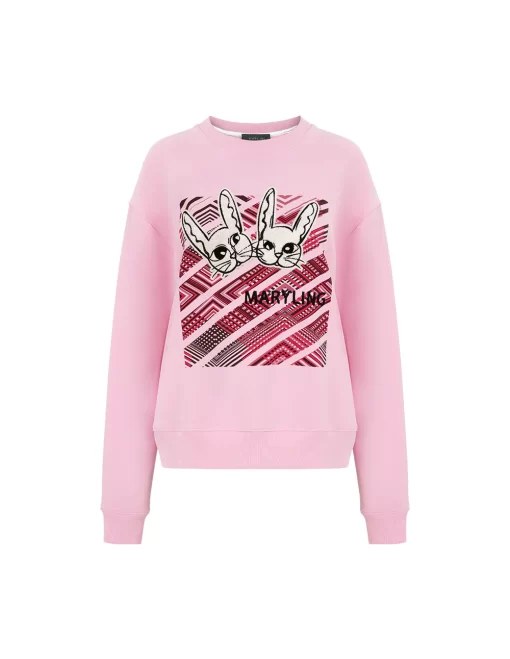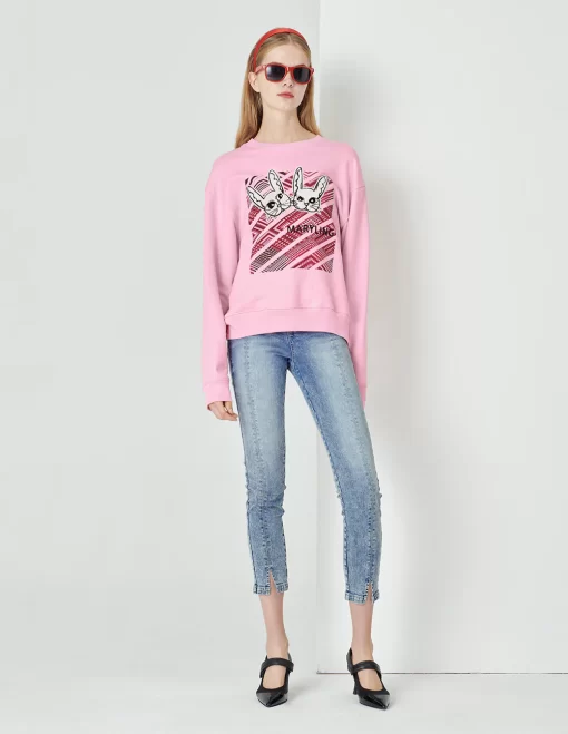 MARYLING Pink Strawberry Bunny Round Neck Ladies Hoodie PINK | NEW IN