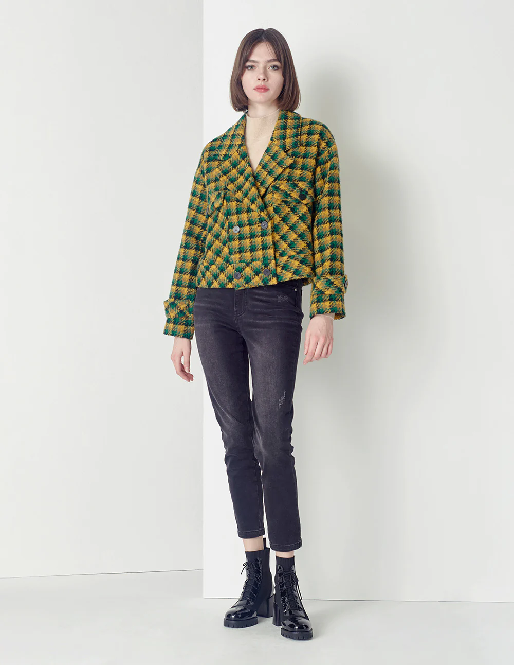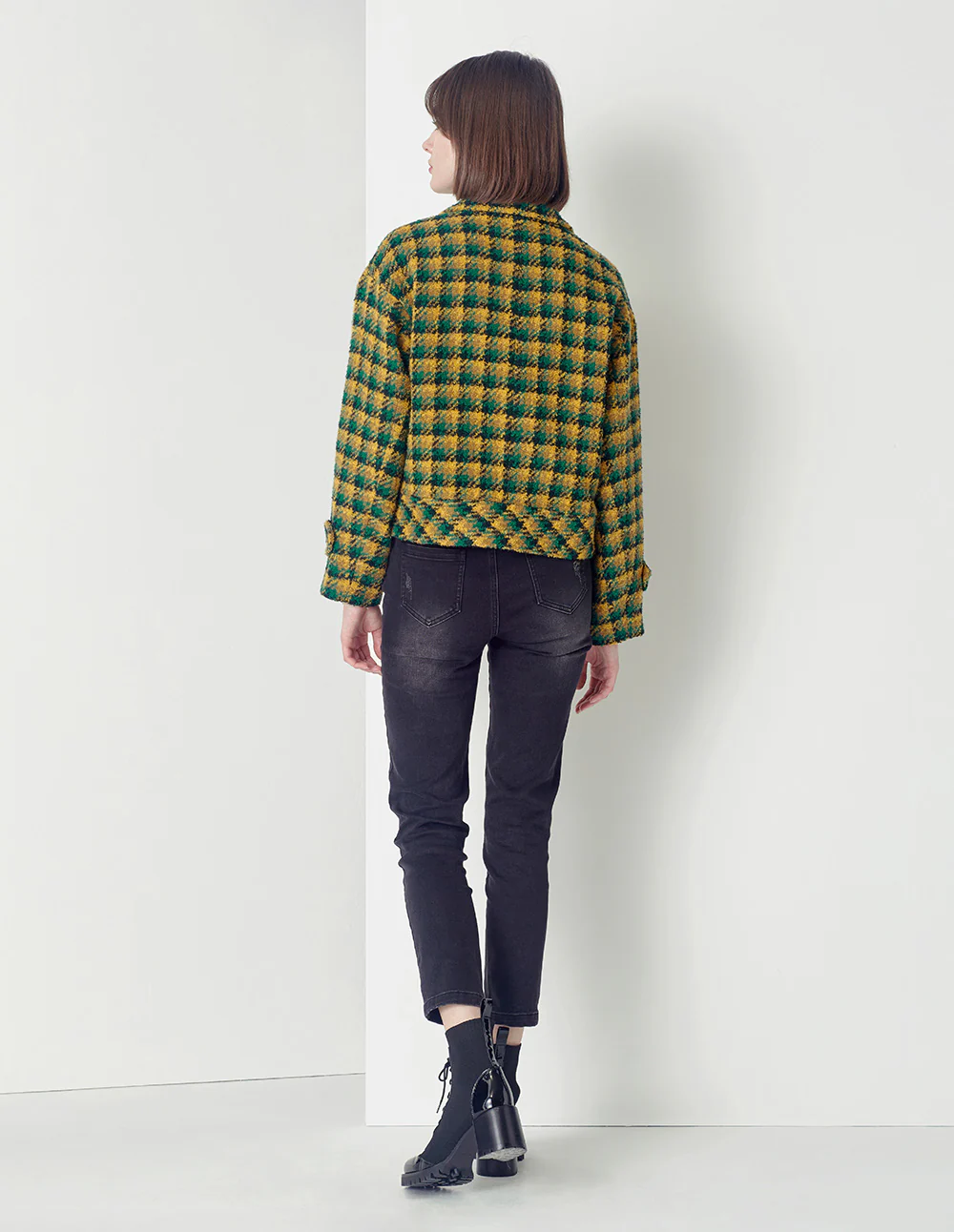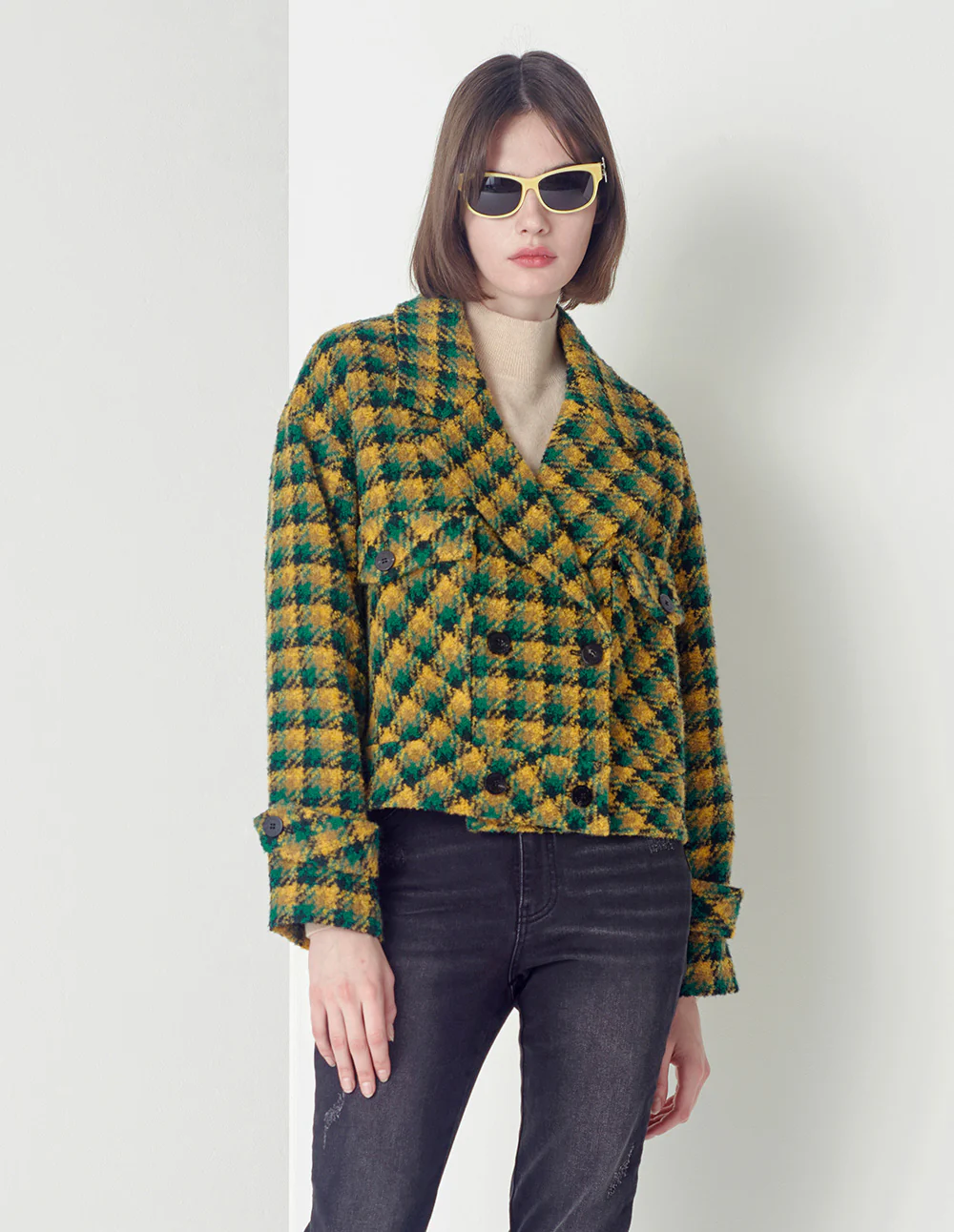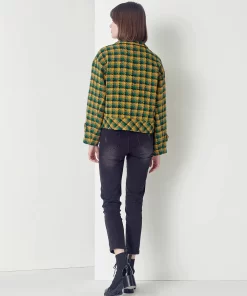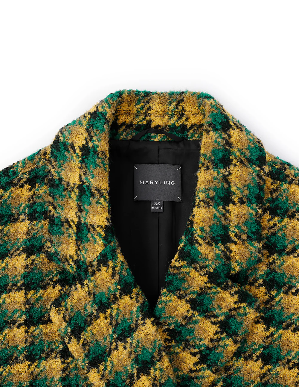 Maryling Retro Yellow Green Plaid Ladies Short Jacket CHECKS | Womens JACKET & COAT