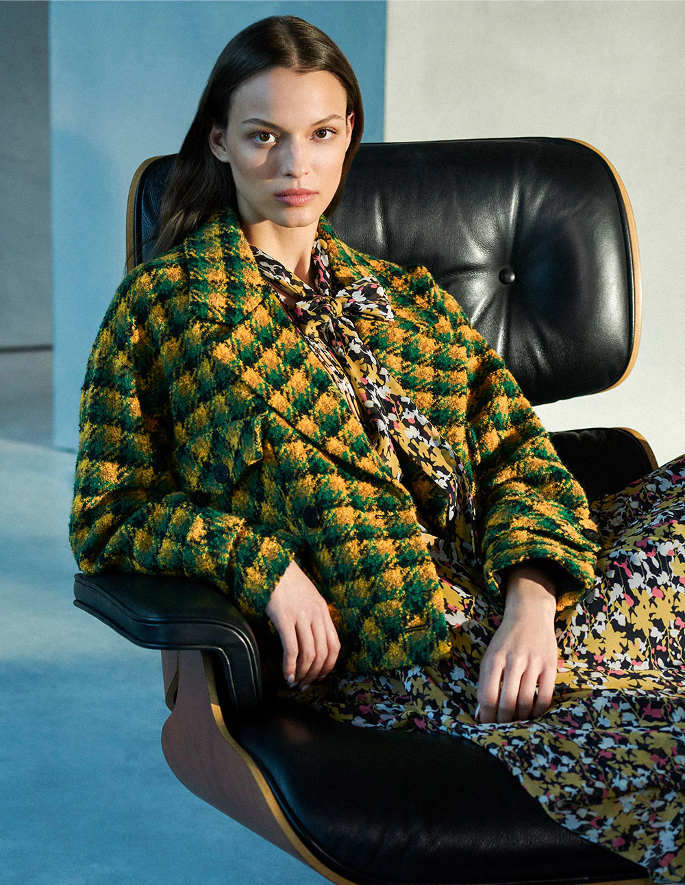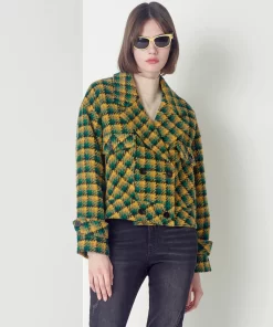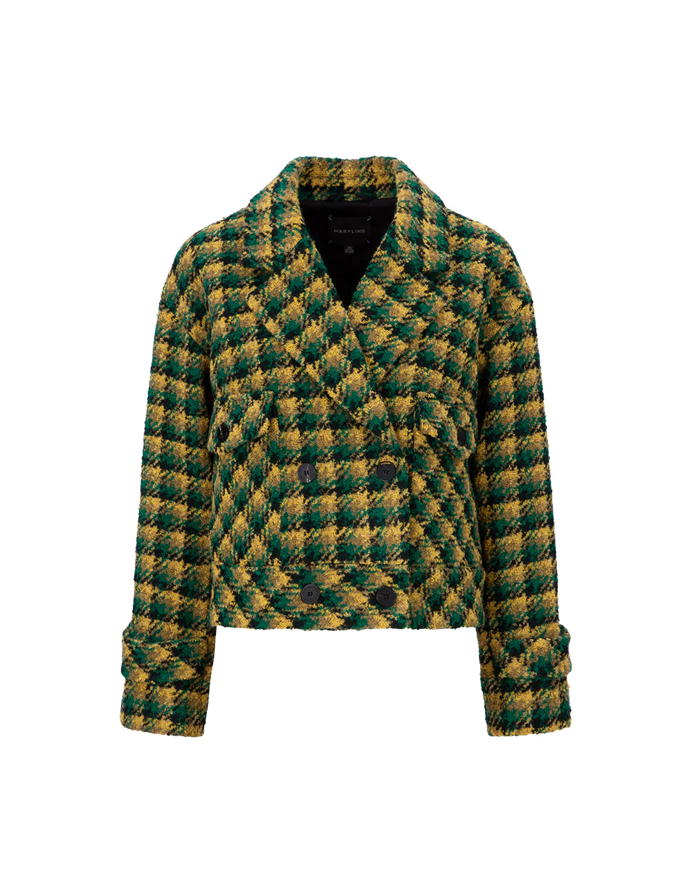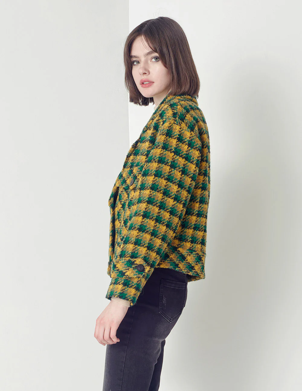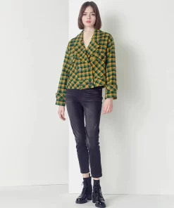 Maryling Retro Yellow Green Plaid Ladies Short Jacket CHECKS | Womens JACKET & COAT