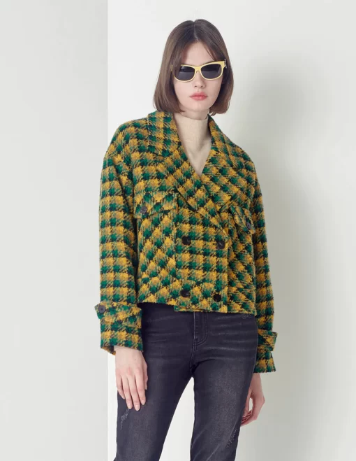 Maryling Retro Yellow Green Plaid Ladies Short Jacket CHECKS | Womens JACKET & COAT