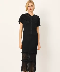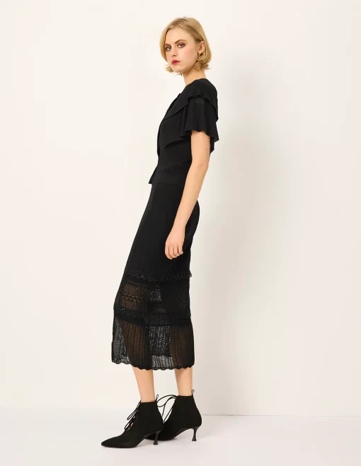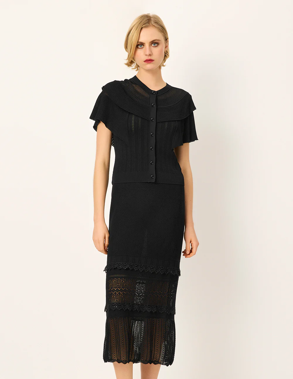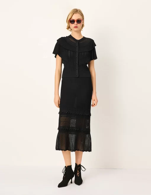 Be the first to review “MARYLING Round Neck Double Layer Ruffled-Trim Knit Cardigan BLACK | Womens knitwear” Cancel reply