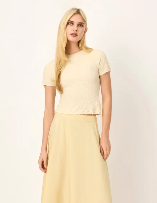 Be the first to review “MARYLING Round-Neck Short-Sleeve Grid Breathable Cotton Knit Top CREAM | Womens knitwear” Cancel reply