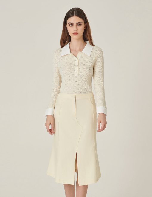 Be the first to review “MARYLING Shirt-Collar Patchwork Knitted Top CREAM | Womens knitwear” Cancel reply