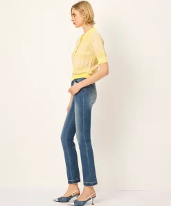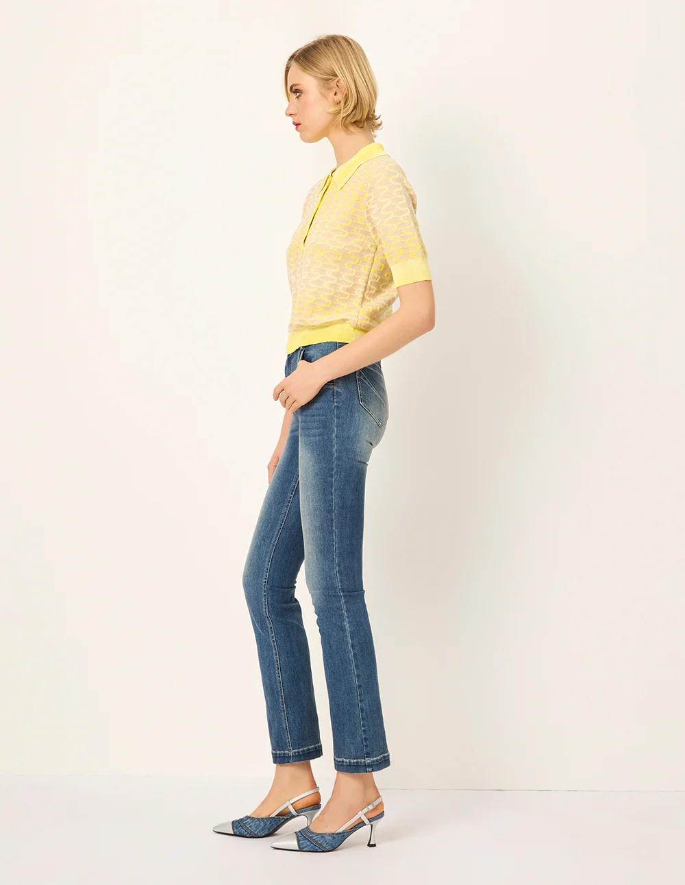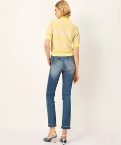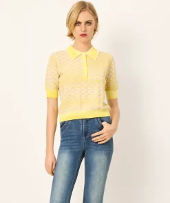 MARYLING Shirt-Collar Short Sleeve Gradient Yellow Knit Pullover YELLOW | Womens knitwear