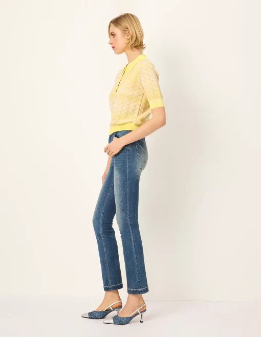 MARYLING Shirt-Collar Short Sleeve Gradient Yellow Knit Pullover YELLOW | Womens knitwear