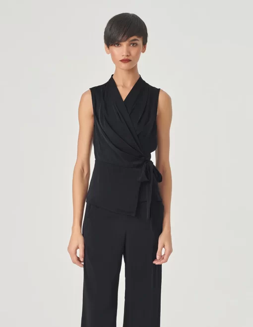 MARYLING’ssleevelesstophasaslightlypleatedV-neckdesignthatbringsatouchofvitalityandsexiness;theoverlappingsidestrapdesignmakesiteasyandcasual,makingitagoodchoiceforanurbanlook.FitTruetosize,chooseyournormalsizeComposition100%polyesterfiberWashingmethodHandwashMaxwashingtemperature40¡æDonotbleachHangingtodryIronsoleplatemaximumtemperature110¡æRegulardrycleaningNote:washseparately