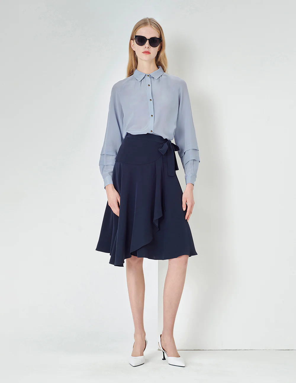 MARYLINGelegantshirtfeaturingaminimalsilhouettewithpleateddetailingonthesleeves.Thisblouseexudesafeminineallurethatlendselegancetoeverydaylooks.FitTruetosize,chooseyournormalsizeComposition100%PuresilkWashingmethodHandwashMaxwashingtemperature40¡æDonotbleachHangtodryintheshadeIronsoleplatemaximumtemperature110¡æMilddrycleaningNote:Onlywool-silkdetergentcanbeusedSeparatewaterwashing