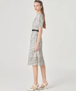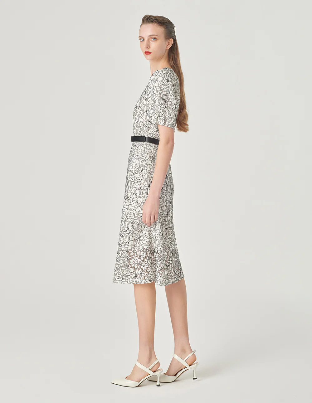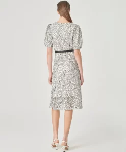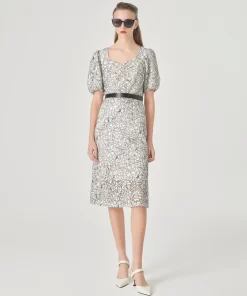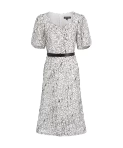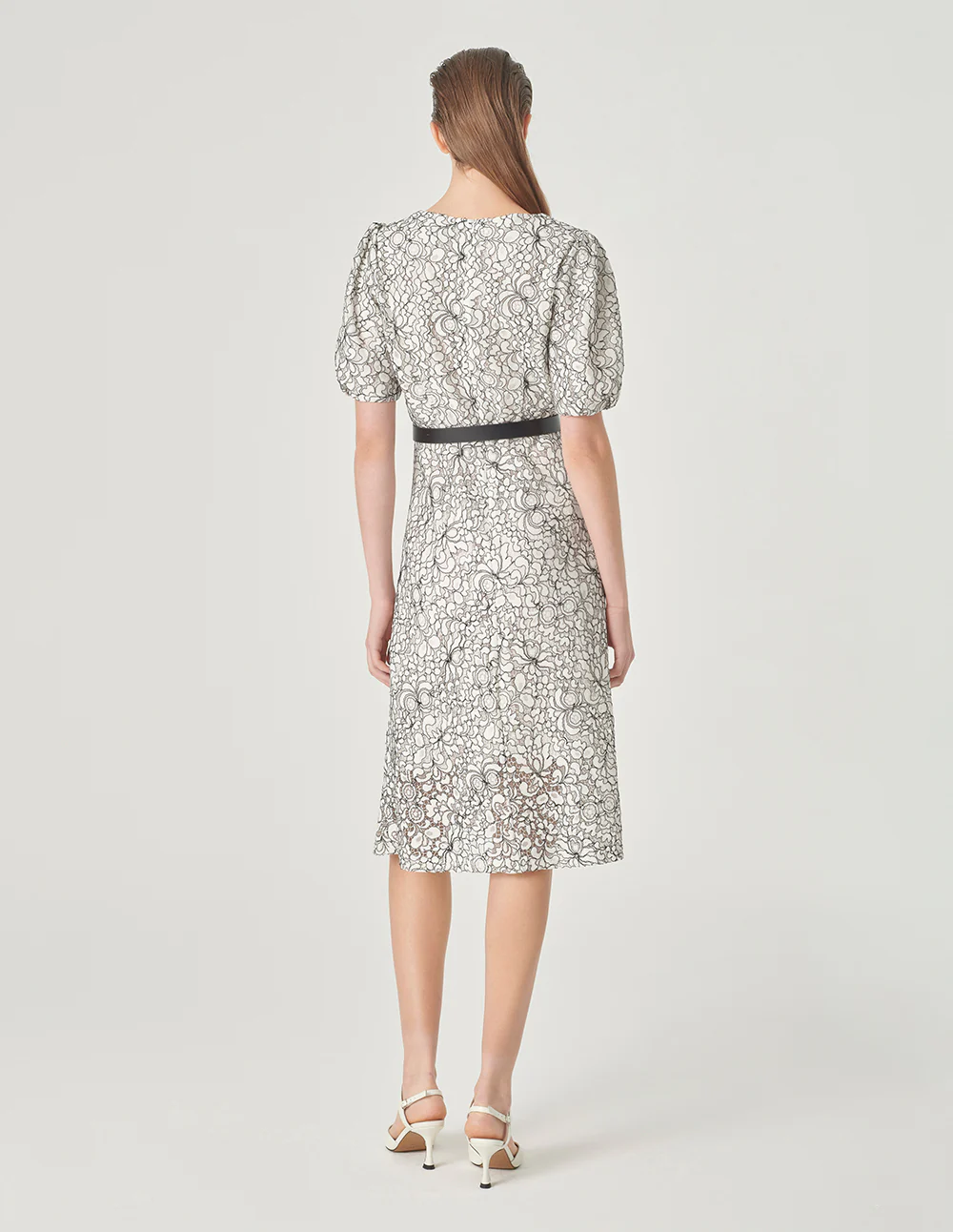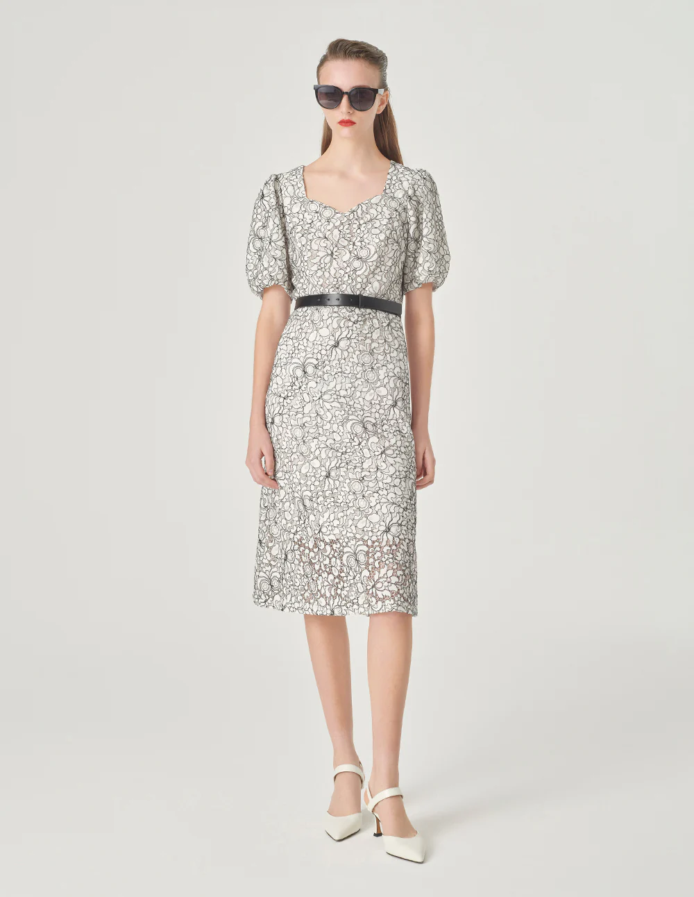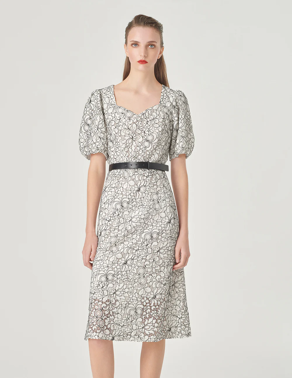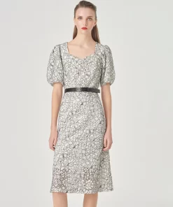 MARYLING Square Neck Puff Sleeve Lace Dress MONOCHROME | NEW IN