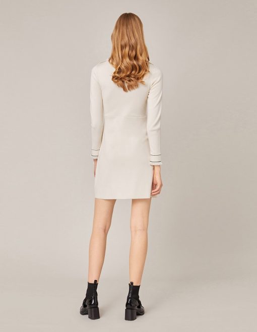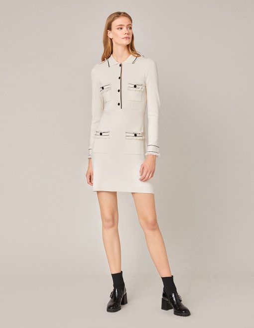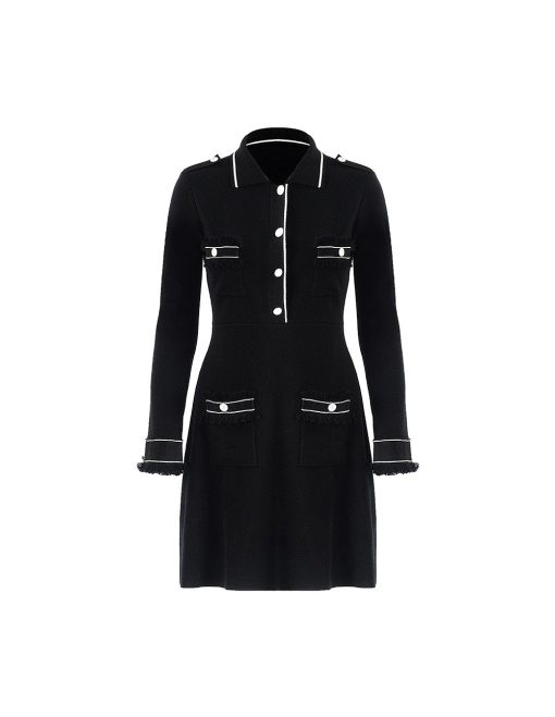 Monochromeminidressfeaturingapolo-inspiredcollarandaccentedwhitetrimandbuttons.Tailoredinaform-fittingstylethisdresshasversatileappealworkingforbothofficeandleisureoccasions.Knittedskirtdesign,classicblackandwhitecolor,fashionableandpracticalWoolblendedmaterial,warmandsoft,skin-friendlyandcomfortableFuzzydesign,fullofingenuityFitTruetosize,chooseyournormalsizeCompositionMAINFABRIC:84.6%SHEEPWOOLFIBER13.8%POLYAMIDE1.6%POLYURETHANEWashingmethodHandwash,themaximumwashingtemperatureis40a??br>DonotbleachDryflatThemaximumtemperatureoftheironsoleplateis110a??br>EasedrycleaningNote:needtobeironedafterwashingReminder:payattentiontomoistureandmoth-proofduringstorage
