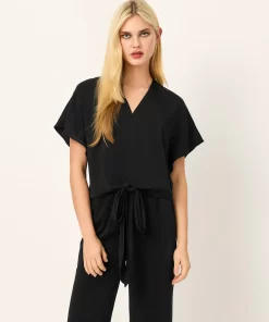 Be the first to review “MARYLING V-Neck Batwing Short-Sleeve Tie Front Top BLACK | Womens knitwear” Cancel reply