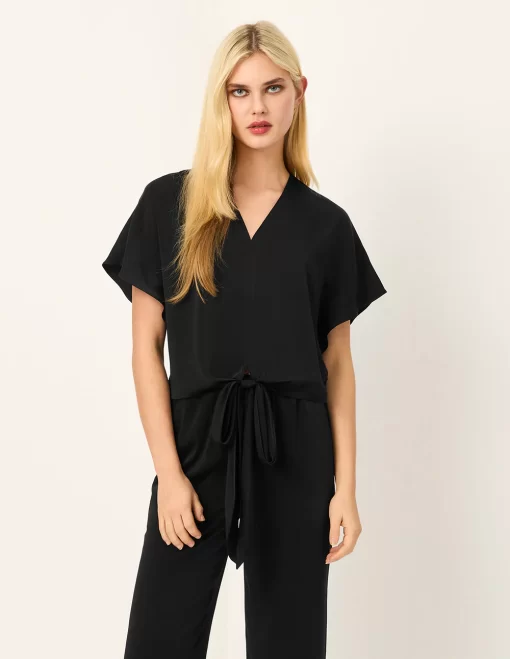 Be the first to review “MARYLING V-Neck Batwing Short-Sleeve Tie Front Top BLACK | Womens knitwear” Cancel reply
