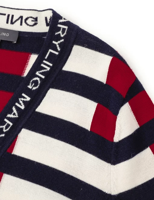 MARYLINGV-neckwoolenknittedjacketismadeof100%wool.Thenavystyleisthree-colorred,white,andblue.Thestripesandthedouble-pocketjacketaresimpleandgenerousinshape,andeasytomatch.FitTruetosize,chooseyournormalsizeCompositionBody:100%SheepWoolRib:84.3%SheepWool15.7%NylonWashingmethodDonotwaterwashingDonotbleachLayflattodryIronsoleplatemaximumtemperature110¡æMilddrycleaningNote:DonotsoakSeparatewaterwashingReminder:Payattentiontomoisture-proofandmoth-proofwhenstoring