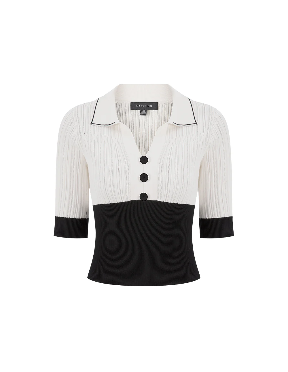 Be the first to review “MARYLING White Tee Collar Colour block Knit Sweater MIX | Womens knitwear” Cancel reply