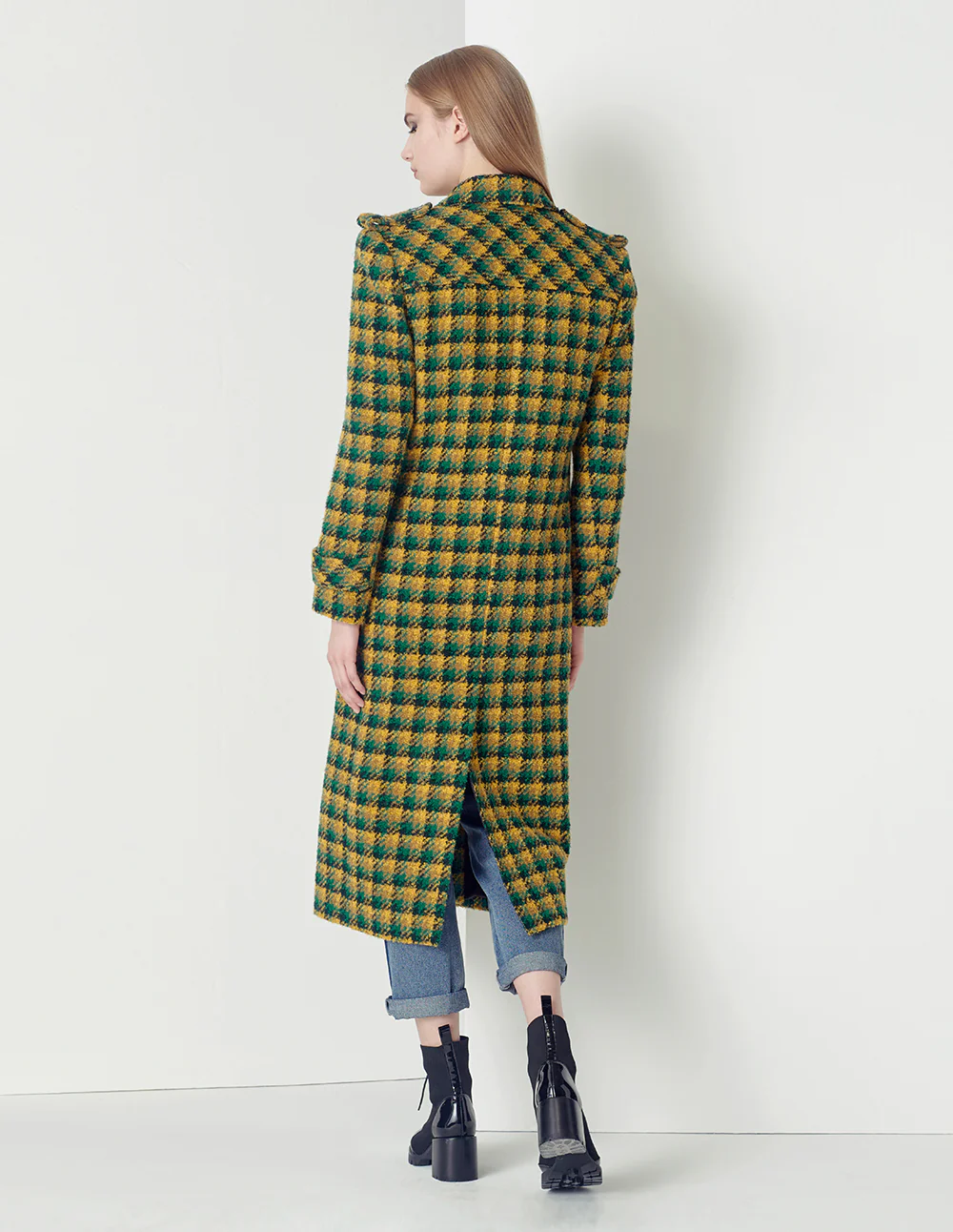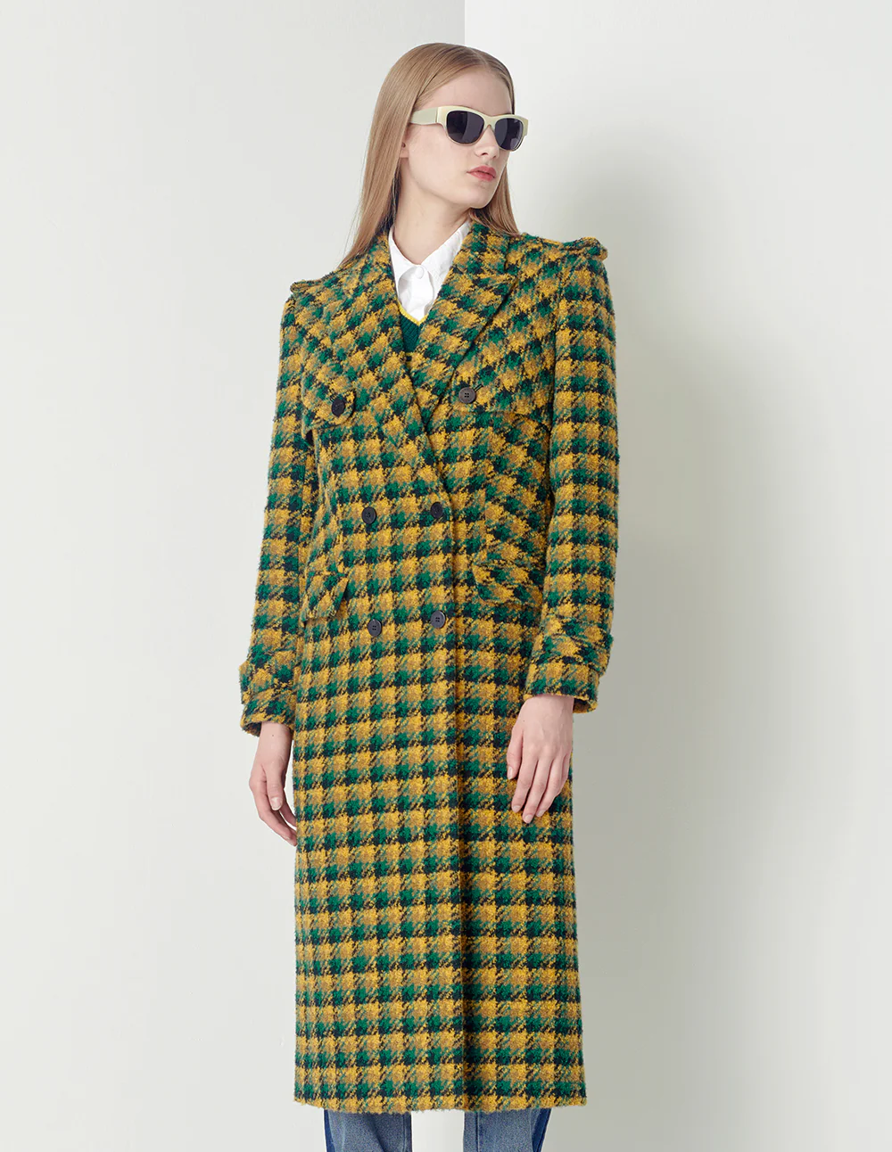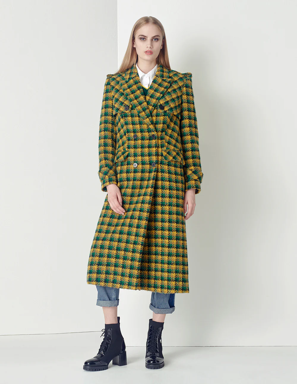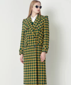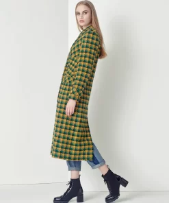 MARYLING Yellow-Green Plaid Lapel Double-Breasted Coat CHECKS | Womens JACKET & COAT
