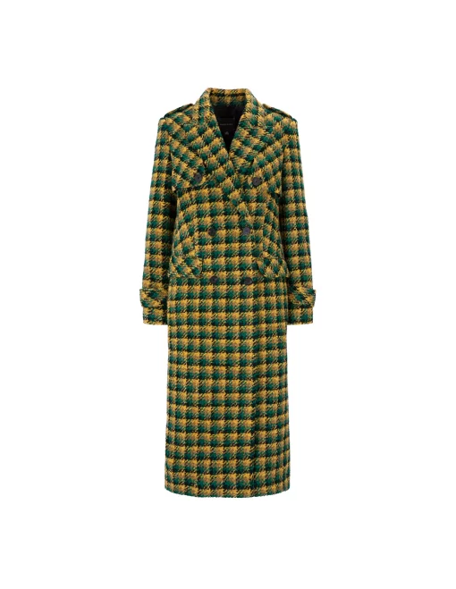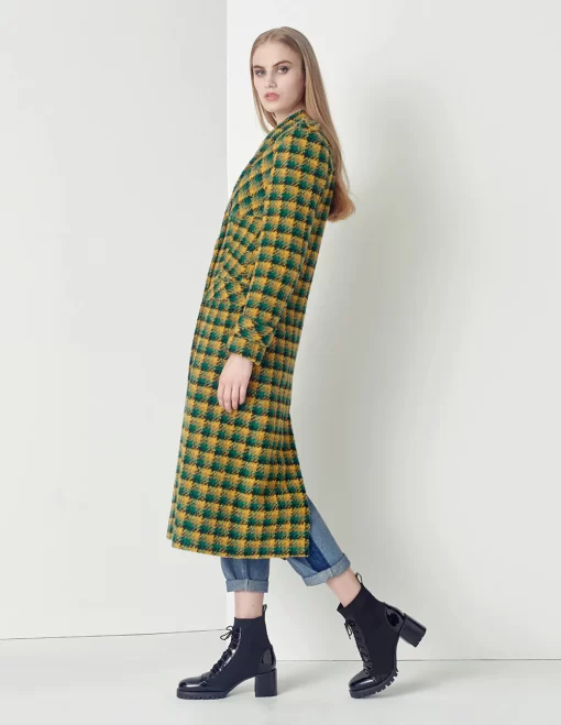 MARYLING Yellow-Green Plaid Lapel Double-Breasted Coat CHECKS | Womens JACKET & COAT