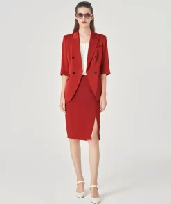 MARYLING Brick Red Peaked Lapel 3/4 Sleeve Single-Breasted Blazer BRICK RED | Womens blazers